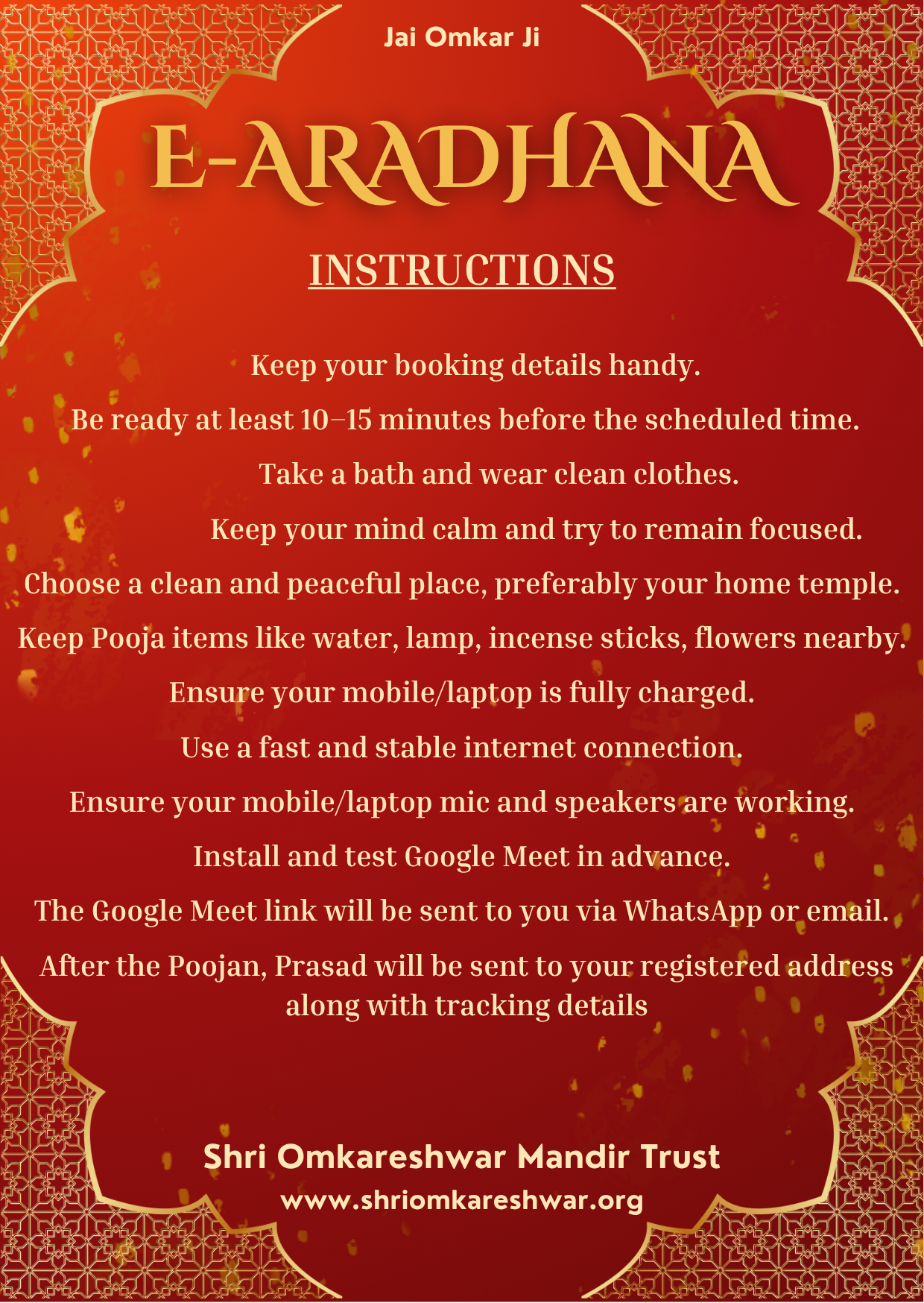 Note: Pujan will be held at the temple and streamed via Google Meet for devotees.